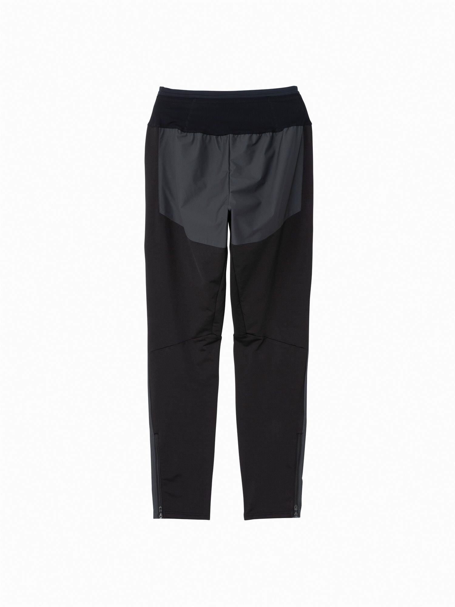 ウエストには高いストレッチ素材を使用した6つのポケットを配置。幅広い面で体にフィットさせて収納できるため、ジェルやエナジーバーなどの行動食や、スマートフォンなどの小物の揺れを抑えながら携行できます。ウエア内のムレを素早く排出できるサイドベンチレーションやシューズを履いたままでもスムーズに着脱できる裾ファスナーなど便利で快適な機能を備えています。足さばきが良いタイトなテーパードシルエットながら、ヒップラインが目立ちにくいスタイリッシュなデザインです。